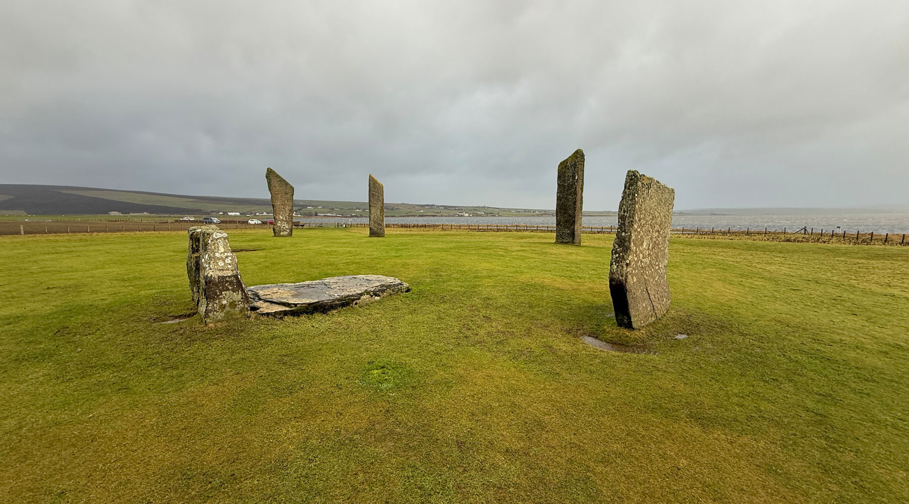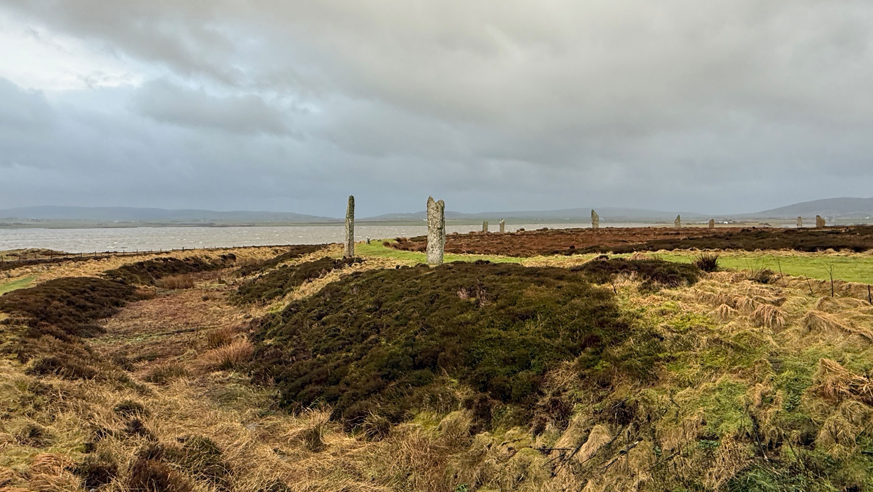 The Stones of Stenness are an 18-minute 0.8 mile walk from Stenness Garage bus stop, served by the hourly Stromness-Kirkwall bus X1.