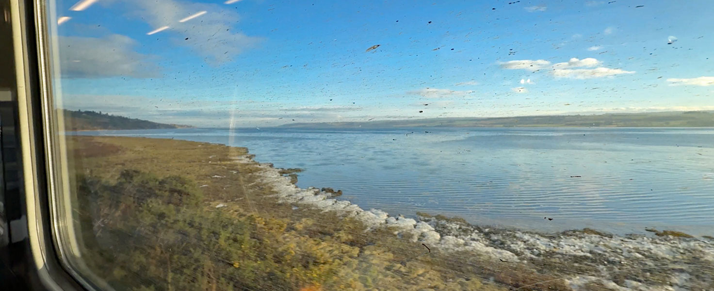 The train runs along the Beauly Firth to Muir of Ord and Dingwall, where the line to Kyle of Lochalsh diverges to the west. It then runs along Cromarty Firth.