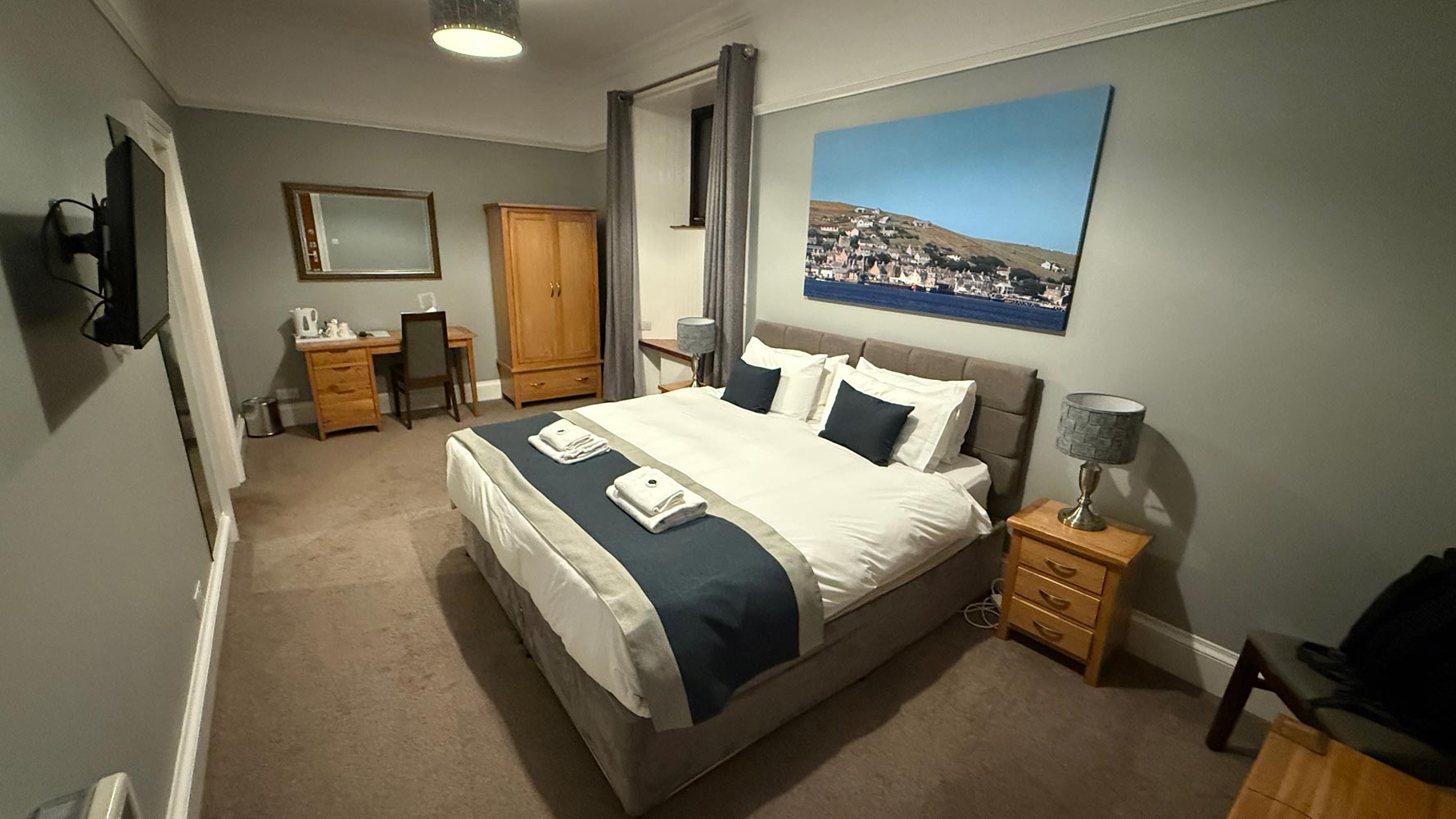 Kirkwall Hotel, Kirkwall: On the harbour-front road in the centre of Kirkwall, the Kirkwall Hotel is a 5-minute walk from the Travel Centre where the bus from Stromness arrives, a 7-minute walk from St Magnus Cathedral. A hotel I can personally recommend, with character, comfortable rooms, and excellent local kippers on the menu for breakfast.