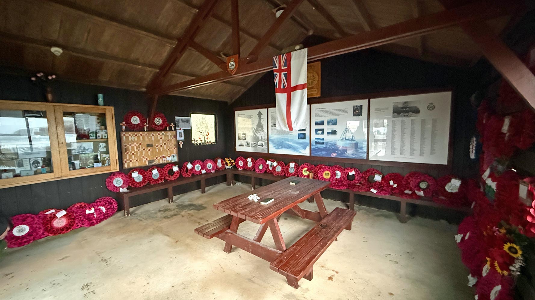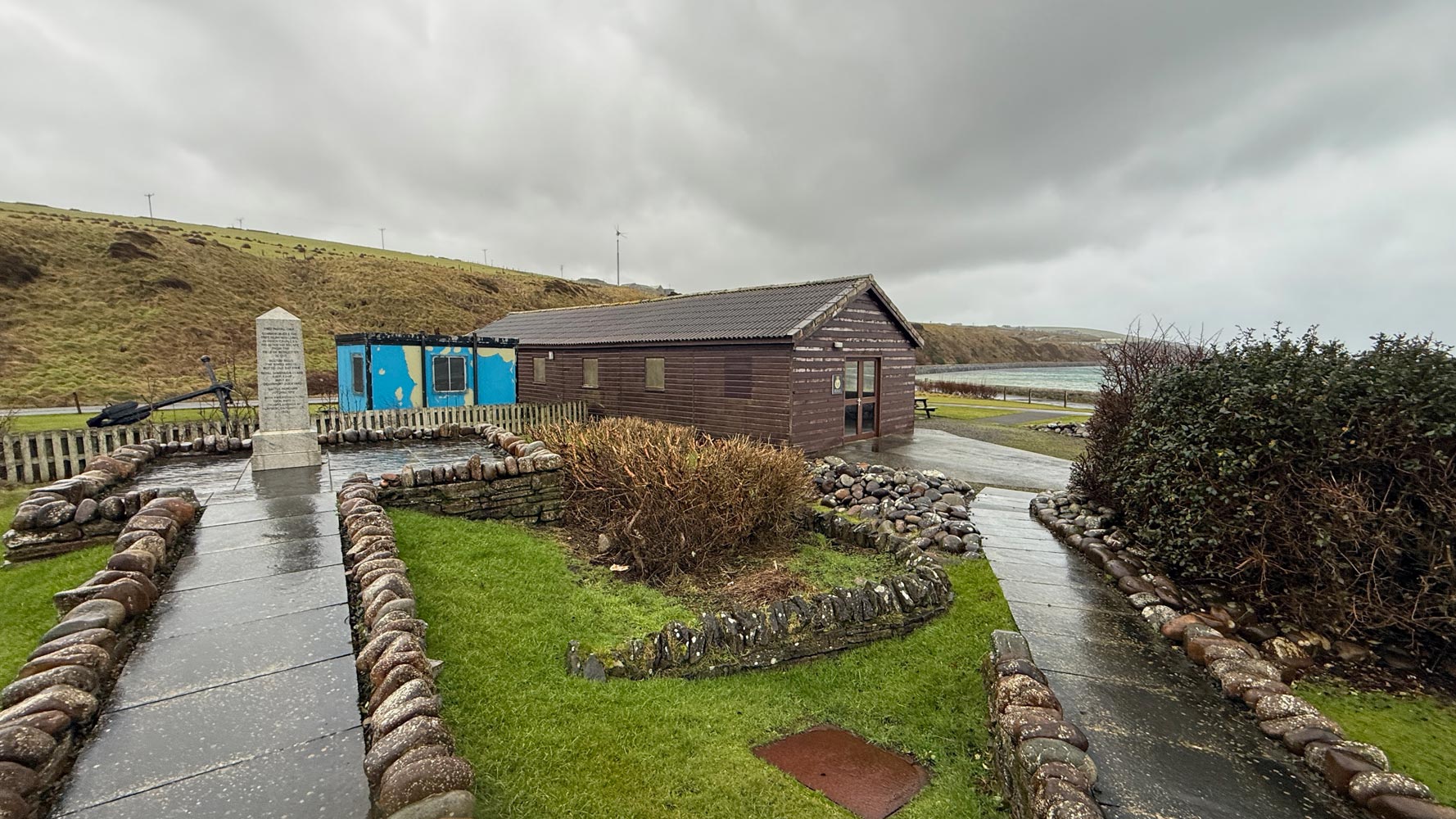 Below, the Royal Oak memorial at Scapa Beach, a 40-minute 1.8 mile walk from Kirkwall or an 11-minute ride on hourly bus 9 from Kirkwall travel centre.