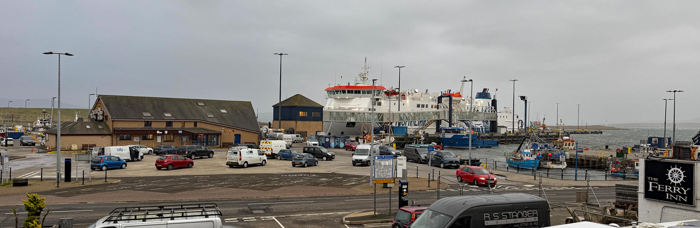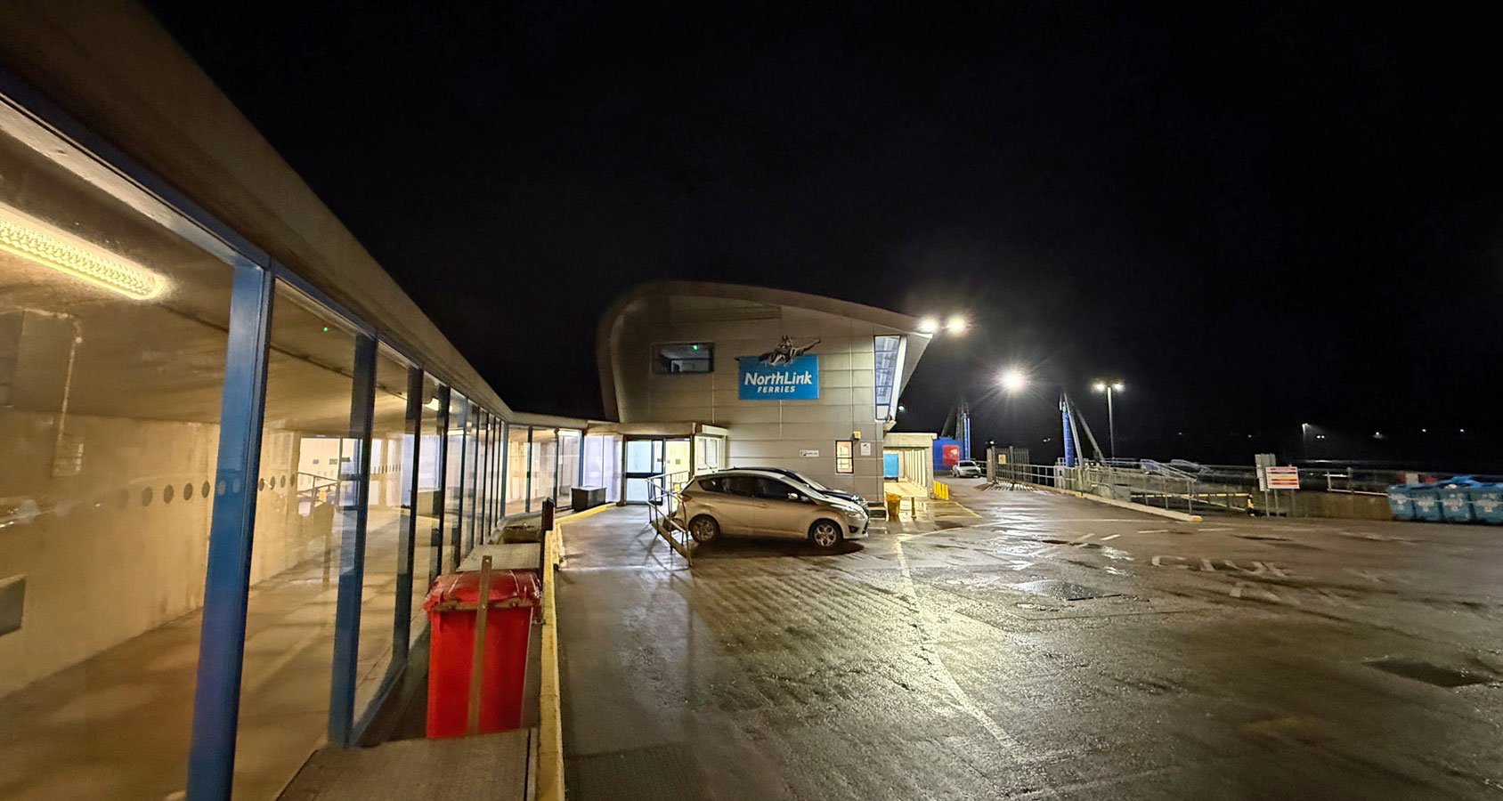 Foot passengers check in at the new Northlink Ferries terminal at the very far end of the harbour area. Ignore the old Northlink Ferries terminal building just beyond the Ferry Inn, keep going to the furthest pier!