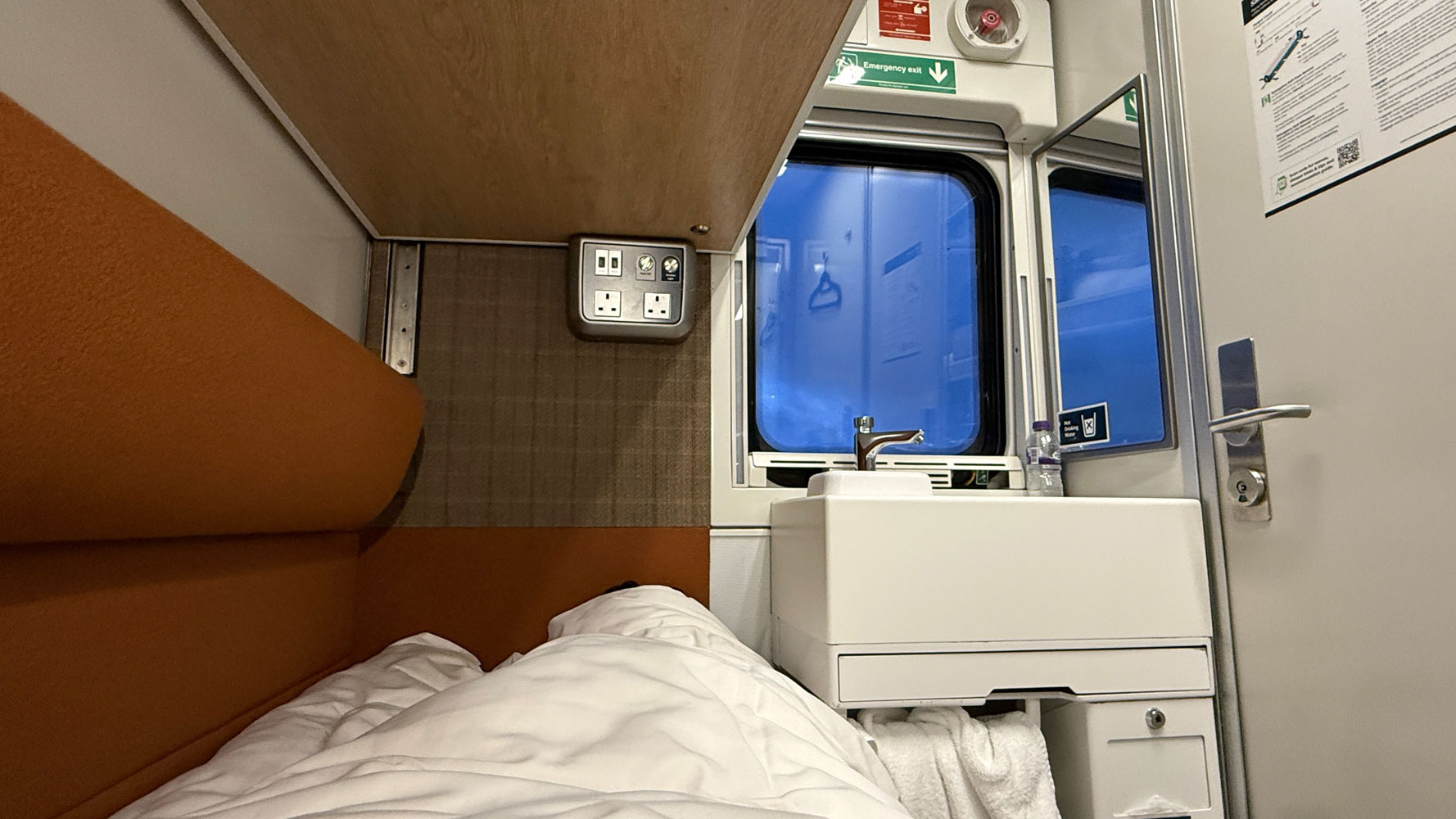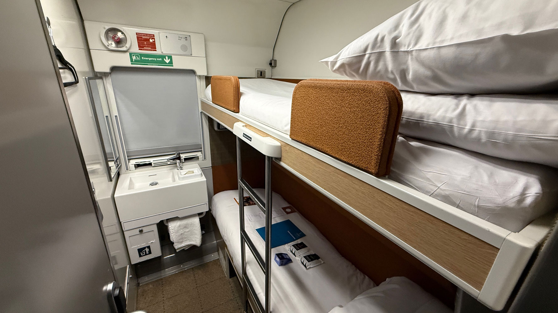 A 1 or 2-berth room on the Caledonian Sleeper (above left) and the sleeper's club car (above right).