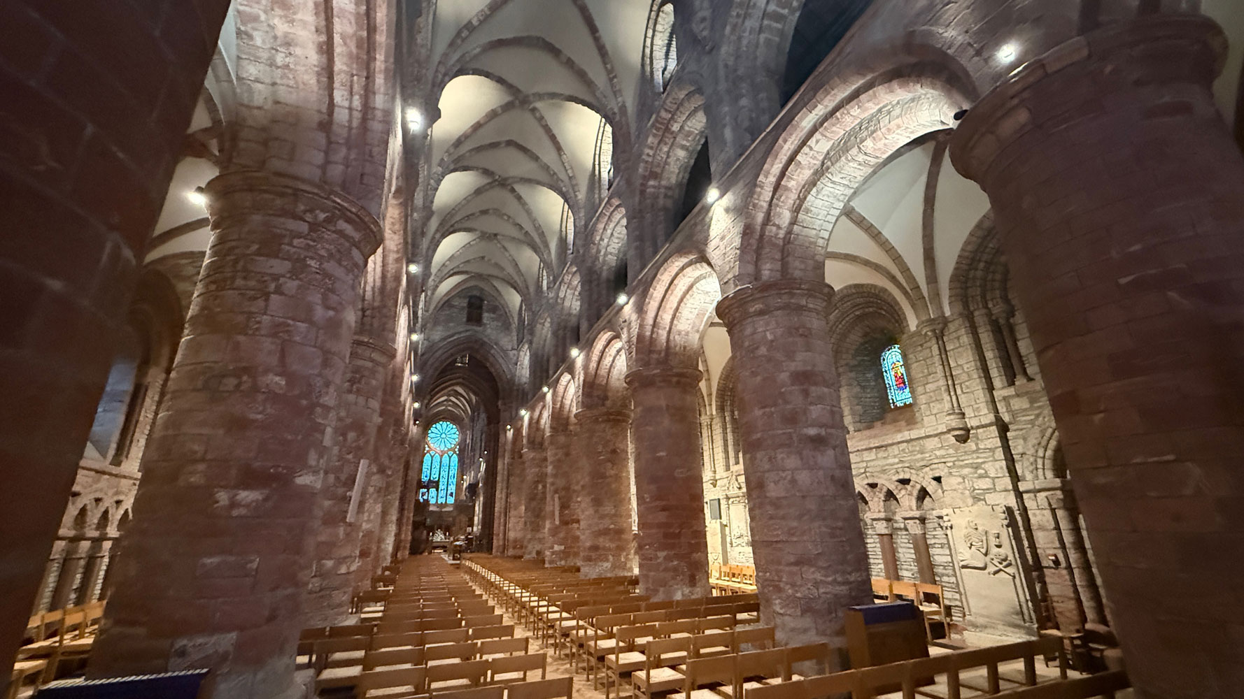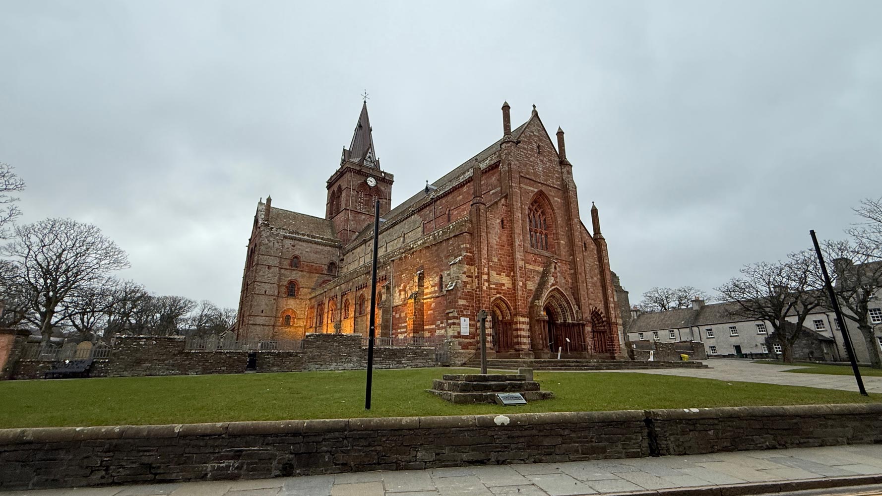 In the centre of Kirkwall, Orkney's main town, St Magnus Cathedral is unlike any other in Great Britain. Construction started in 1137, when Orkney was still part of the Kingdom of Norway, although mason's marks suggest craftsmen were employed who'd previously worked on cathedrals in the north of Britain. The cathedral is named after the Viking Earl and martyr St Magnus, whose remains were found in 1919 in a box hidden behind a stone in a pillar near the choir. St Magnus' remains were placed back in the pillar in 1926. More about St Magnus Cathedral. Story of Viking Earl & martyr St Magnus.