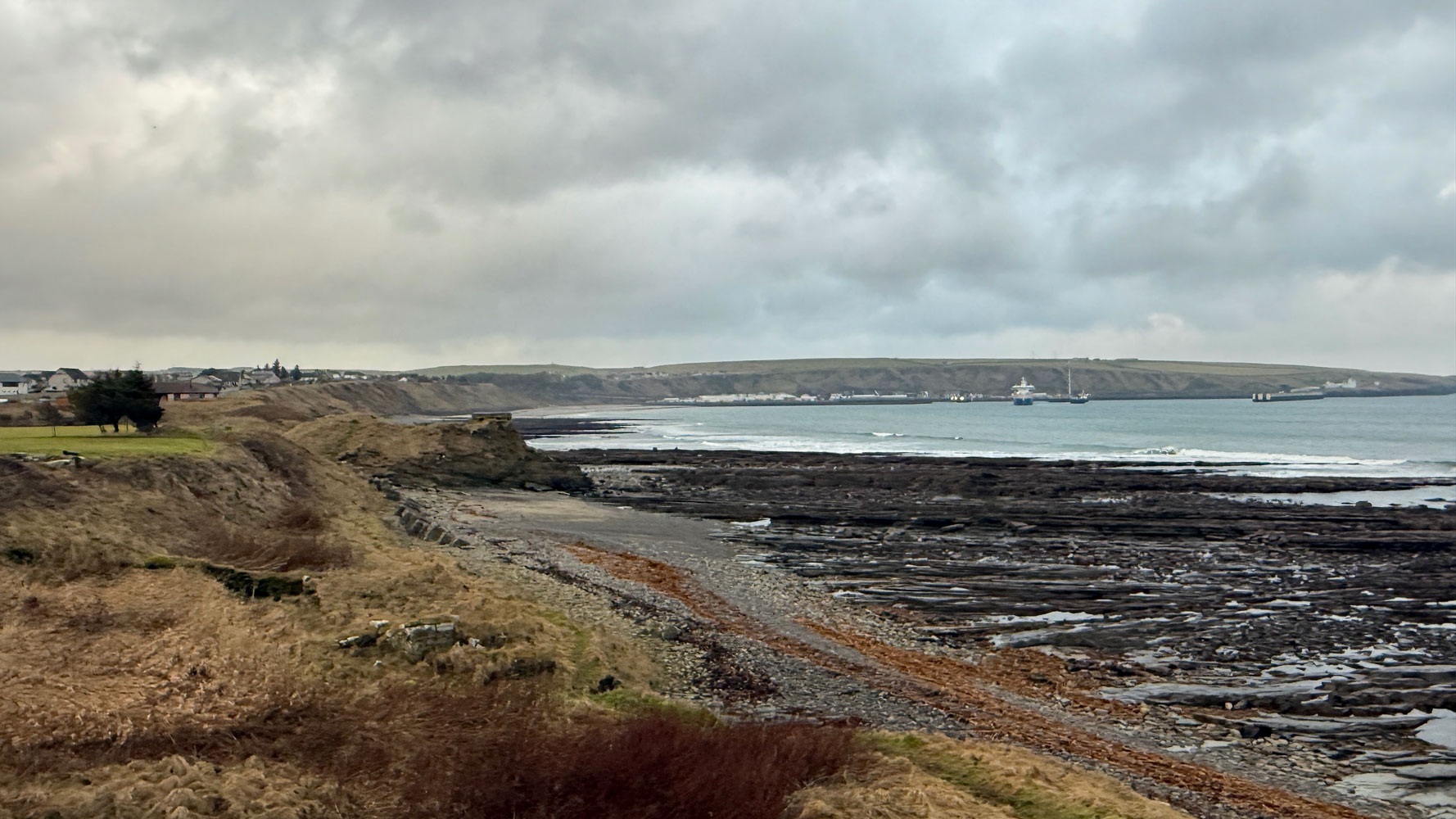 Above, walking from Thurso to Scrabster. I've just left Thurso on the cliff walk, you can see Scrabster in the distance, 2 miles away.