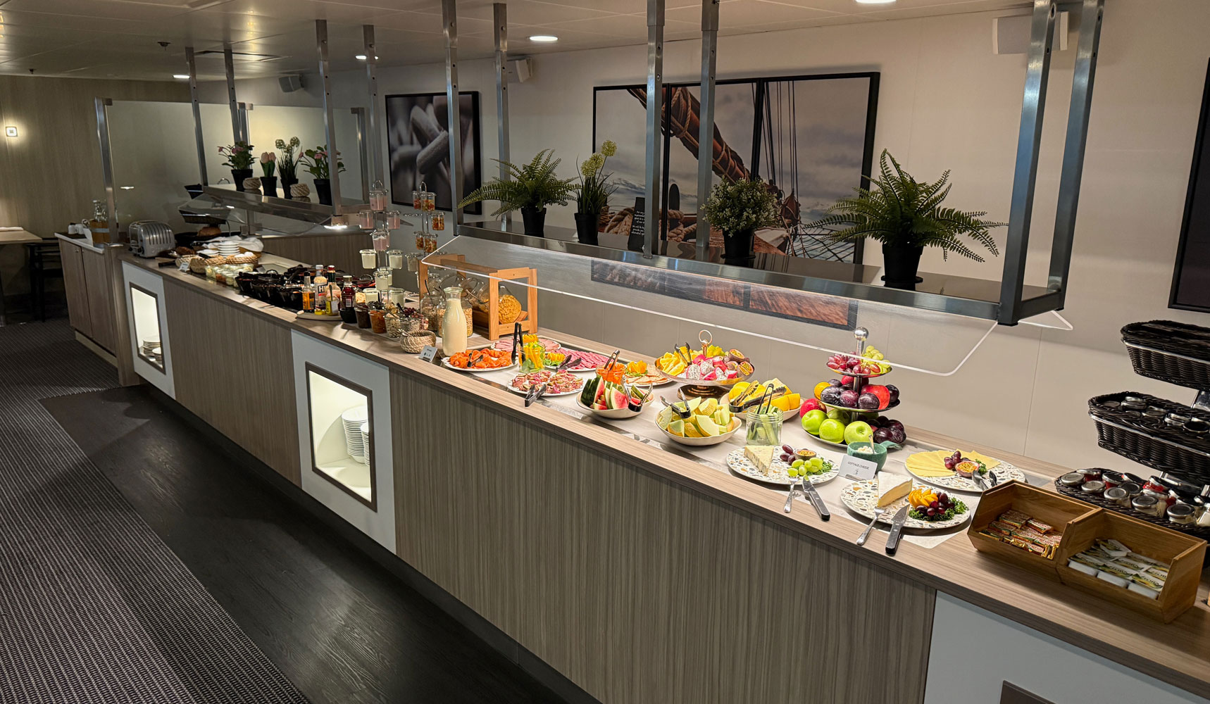Breakfast buffet in the Blue Ribband restaurant, in Commodore & Commodore Deluxe this is included. You can also have breakfast in the main buffet restaurant.