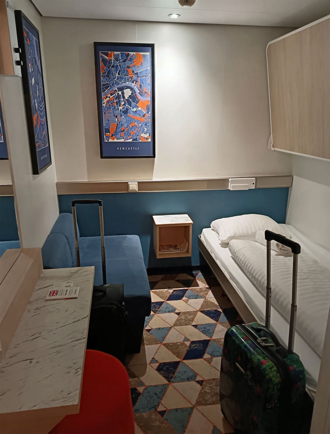 For two people, Newcastle to Amsterdam one-way sharing a 2-bed cabin with shower & toilet costs starts at as little as £43 per person.