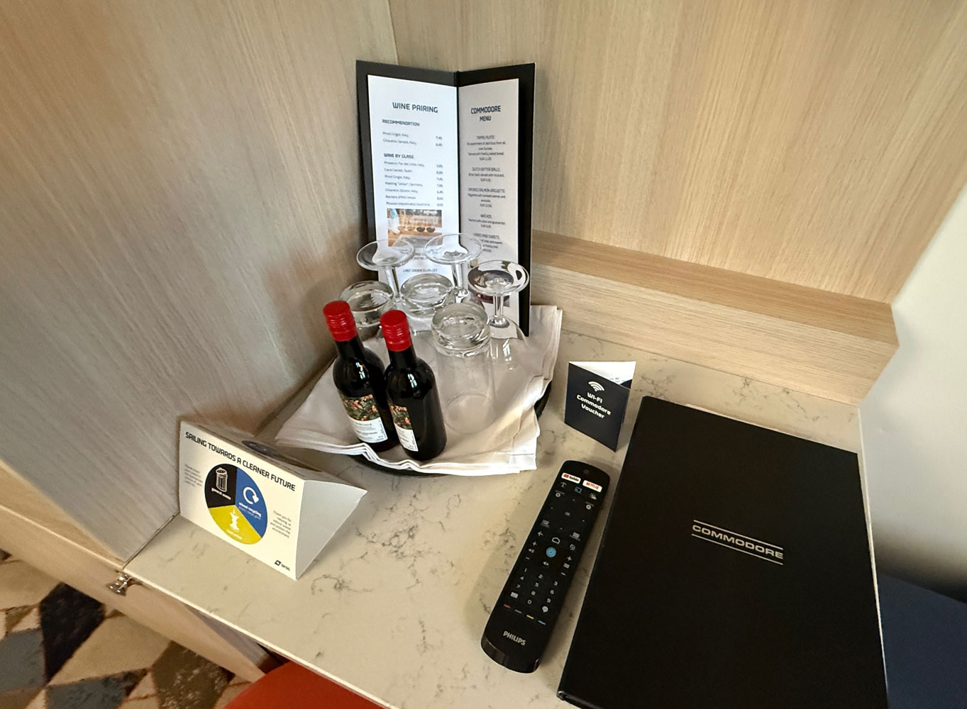 Commodore & Commodore Deluxe cabins have a complimentary minibar and room service.