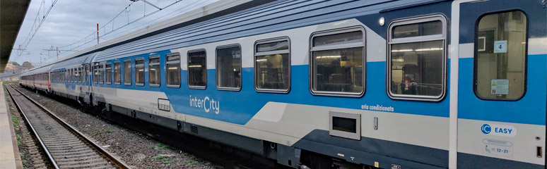 Intercity trains consist of older carriages hauled by locomotives at up to 160 km/h (100 mph) or sometimes 200 km/h (125 mph). Most Intercity cars are open-plan with a centre aisle, a few have a side corridor and classic 6-seat compartments, though you won't always get both types in both classes on a given train. Intercity trains have vending machines selling drinks & snacks, but no catering car. You're free to bring your own food & drink, even a bottle of wine if you like. Tickets for all Trenitalia's long-distance train include a seat reservation and are only valid on the specific date & train you've booked.