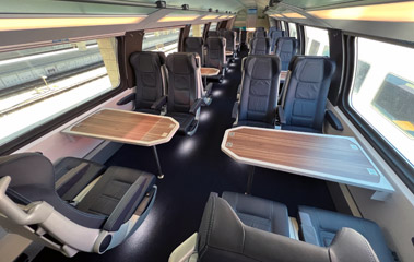 The railjets have economy, first & business class, a restaurant car, power sockets at all seats & free WiFi.