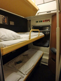 In the morning, the sleeper fare includes tea or coffee plus a simple breakfast box with rolls or bread, butter, jam & orange juice.