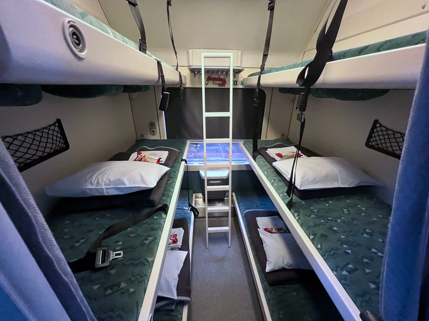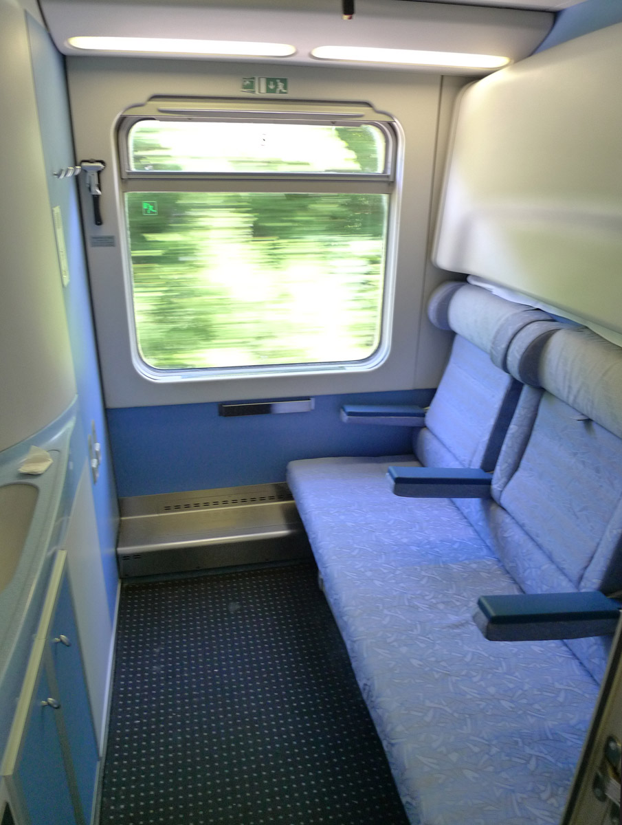 But the sleeping-car has a quieter, more civilised atmosphere and it's obviously the best option for solo travellers & couples not on a tight budget. Some families and many solo travellers prefer it: A bed in a shared 3-bed single-gender sleeper doesn't cost that much more than a bunk in a 4-berth couchette compartment. In the sleeper, you get a proper fully-made-up bed with duvet (in couchettes you get a blanket, sheet & pillow and arrange them yourself), there's a washbasin in the compartment, and a light breakfast is included.